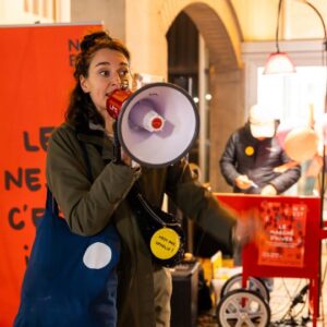 Ophélie: «Non, notre directrice, Alexandra Tobelaim, en poste depuis 2020 et actuellement dans son deuxième mandat, a une expertise dans le ‘dedans-dehors’, c’est-à-dire dans la création de formes de spectacles qui se jouent dans des lieux dédiés – comme les théâtres – mais aussi dans l’espace public.